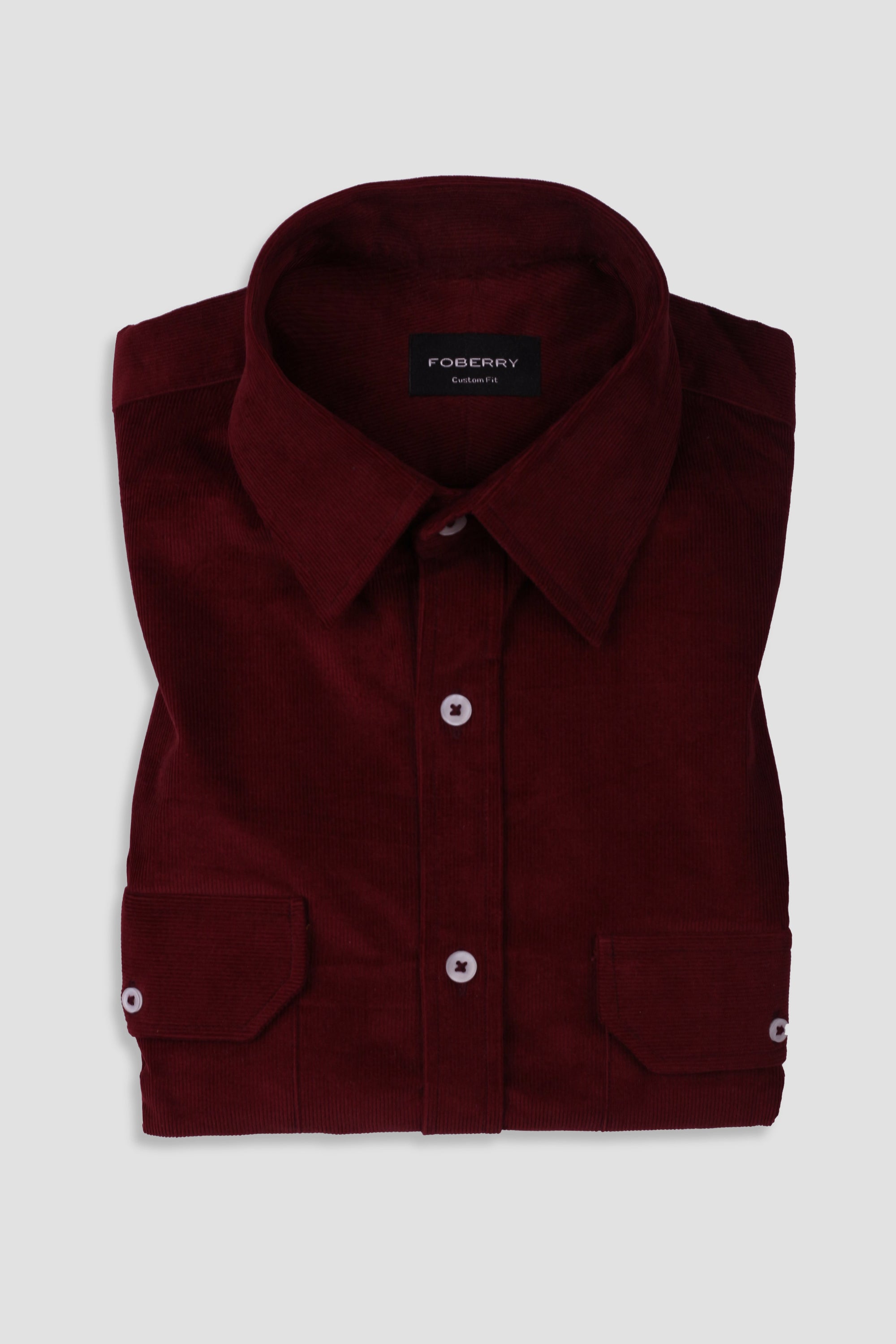 Burgundy Corduroy Shirt - Classic Straight Collar