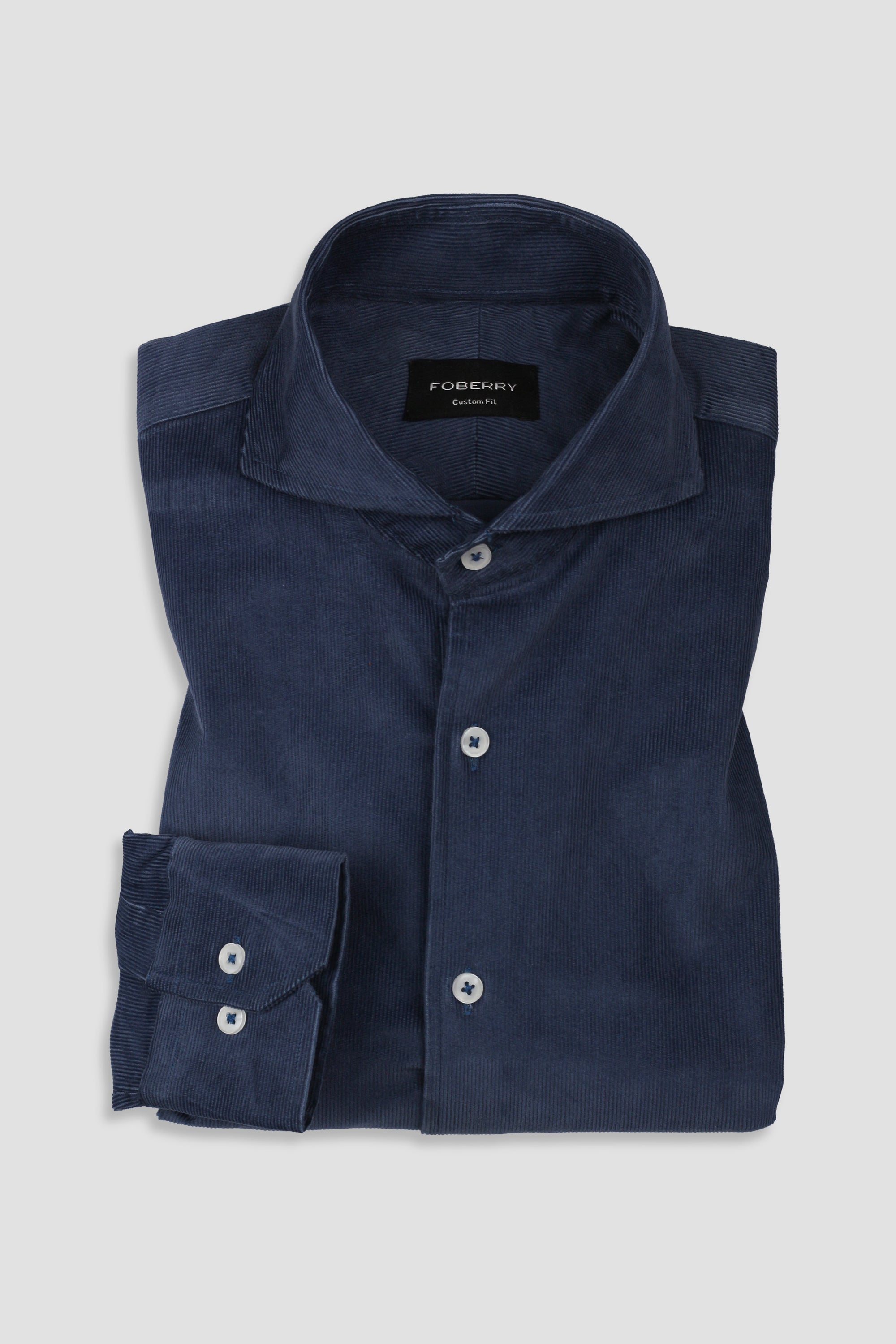 Experience refined tailoring with the Steel Blue Corduroy Shirt - Cut Away Extreme Collar. Expertly crafted for a sharp look and comfortable fit.