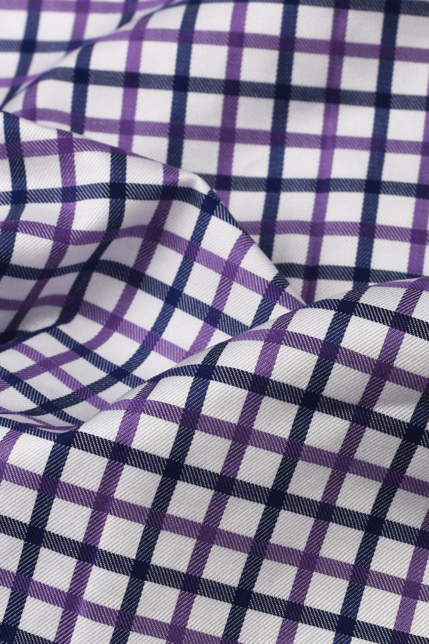 Featuring our magenta grid shirt with dark blue plaids. Soft, and durable cotton feels perfect when wrapped around the skin. Stitched in a cut-away classic collar to make it a perfect semi-formal wear.