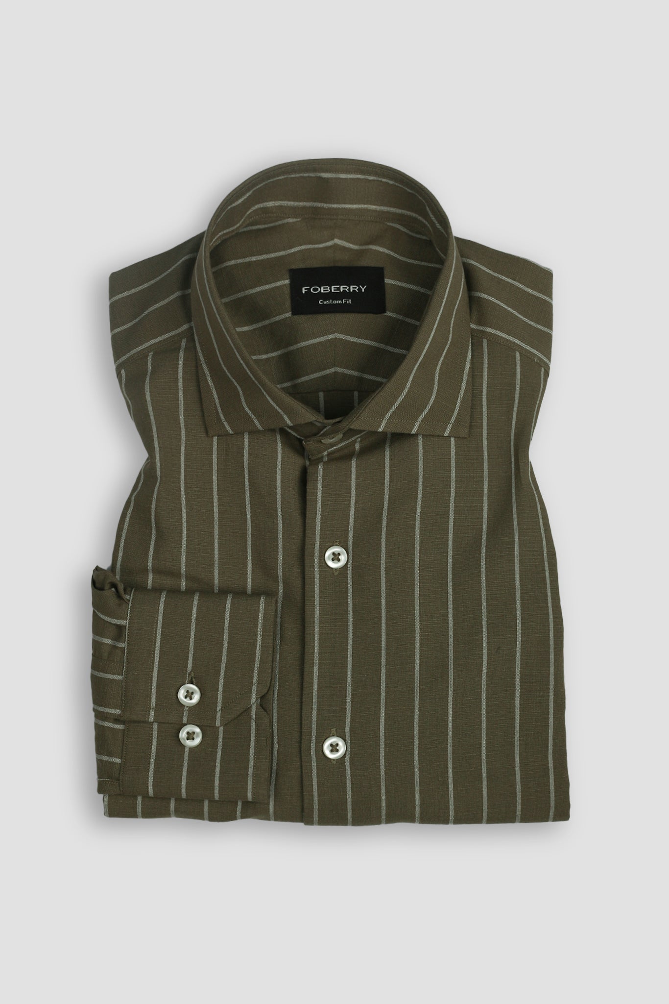 Experience refined tailoring with the Olive White Striped Linen Shirt. Expertly crafted for a sharp look and comfortable fit.