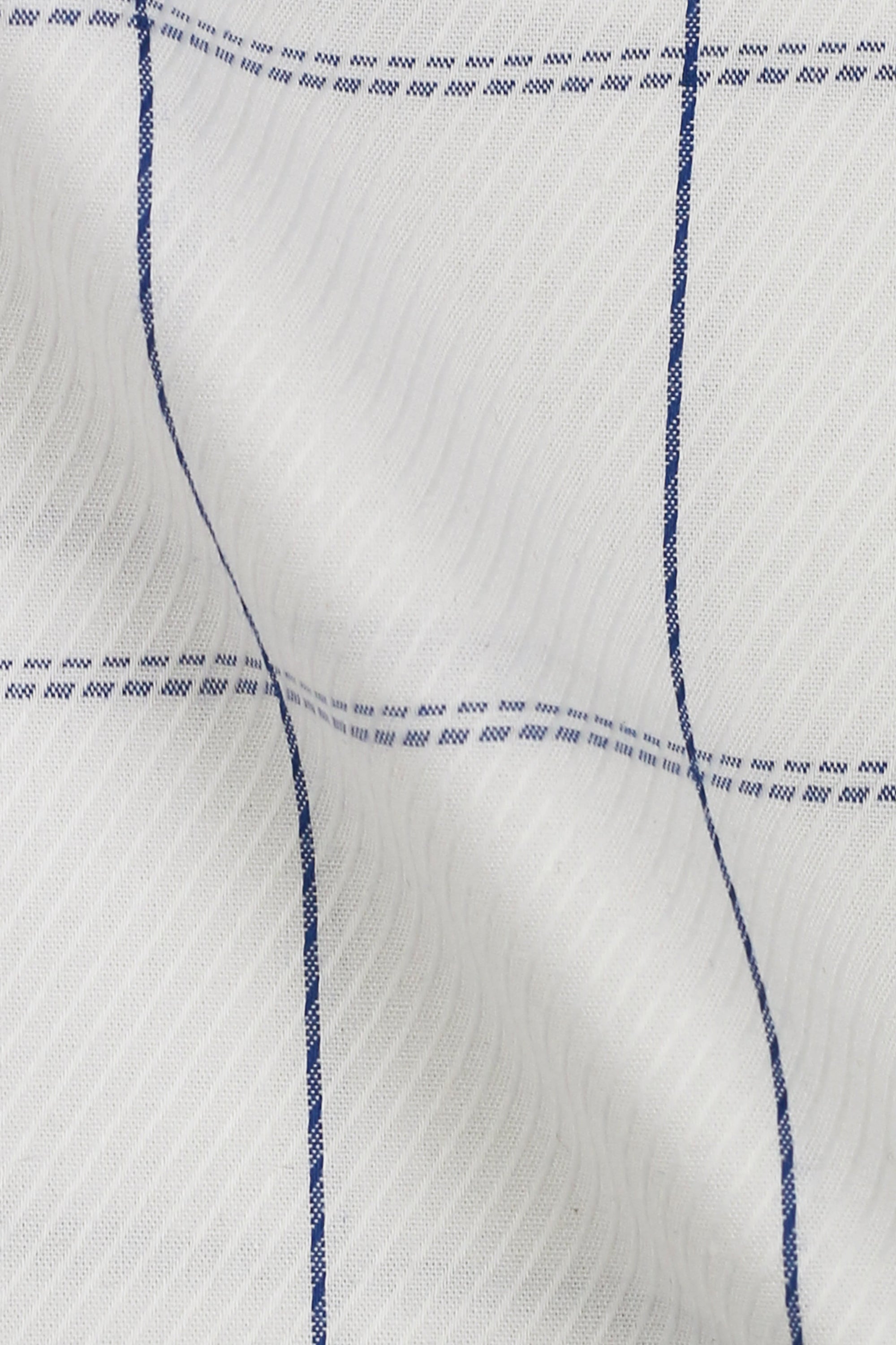 Introducing our Twill White Blue Windowpane Shirt, that will lift your charms and let you be in the limelight. Twill white cotton crisscrossed with blue checks makes it even more subtle and graceful. Stitched in a cut-away extreme collar to enhance the overall outlook of this shirt.