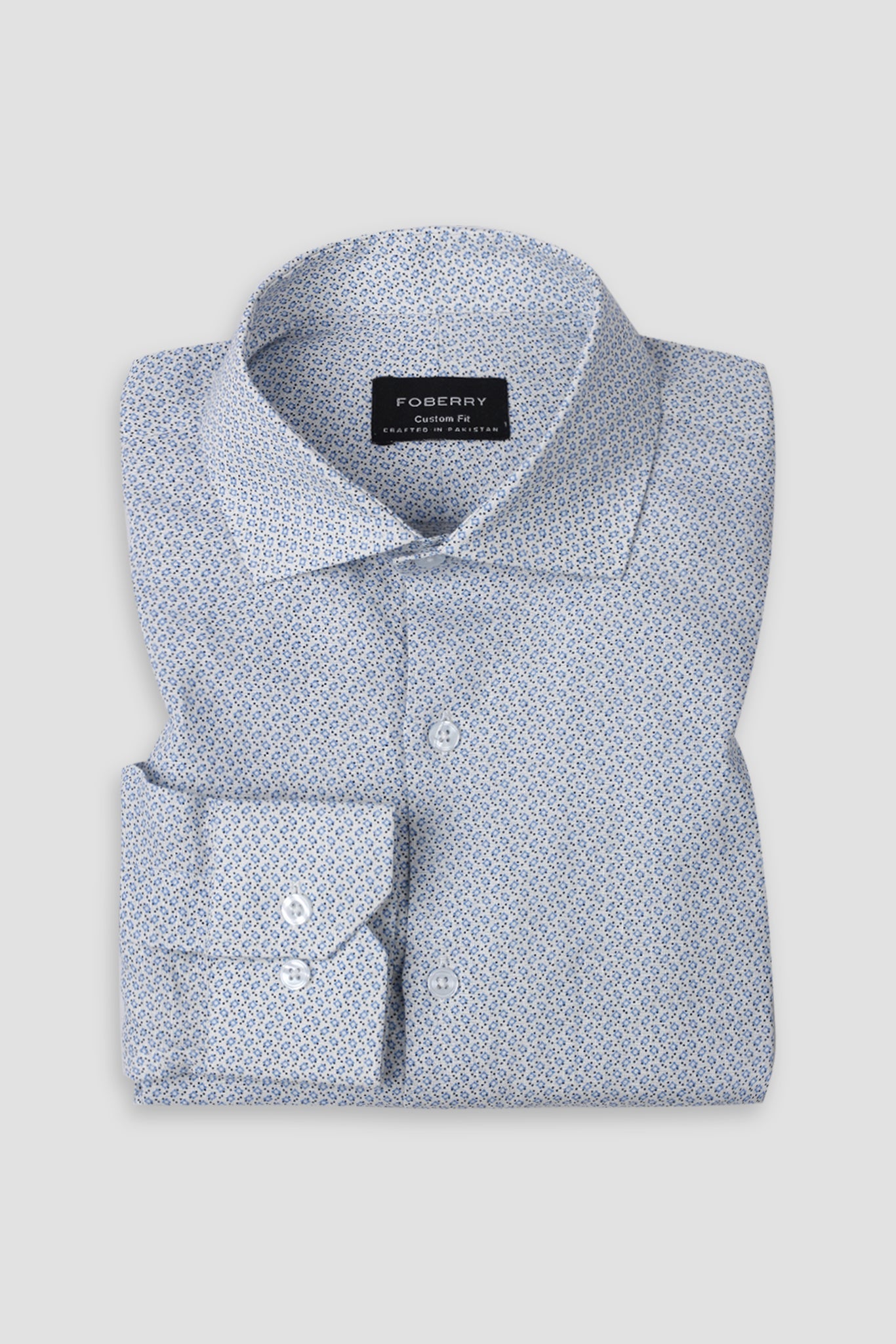 Experience refined tailoring with the Ash Blue Printed Linen Shirt. Expertly crafted for a sharp look and comfortable fit.