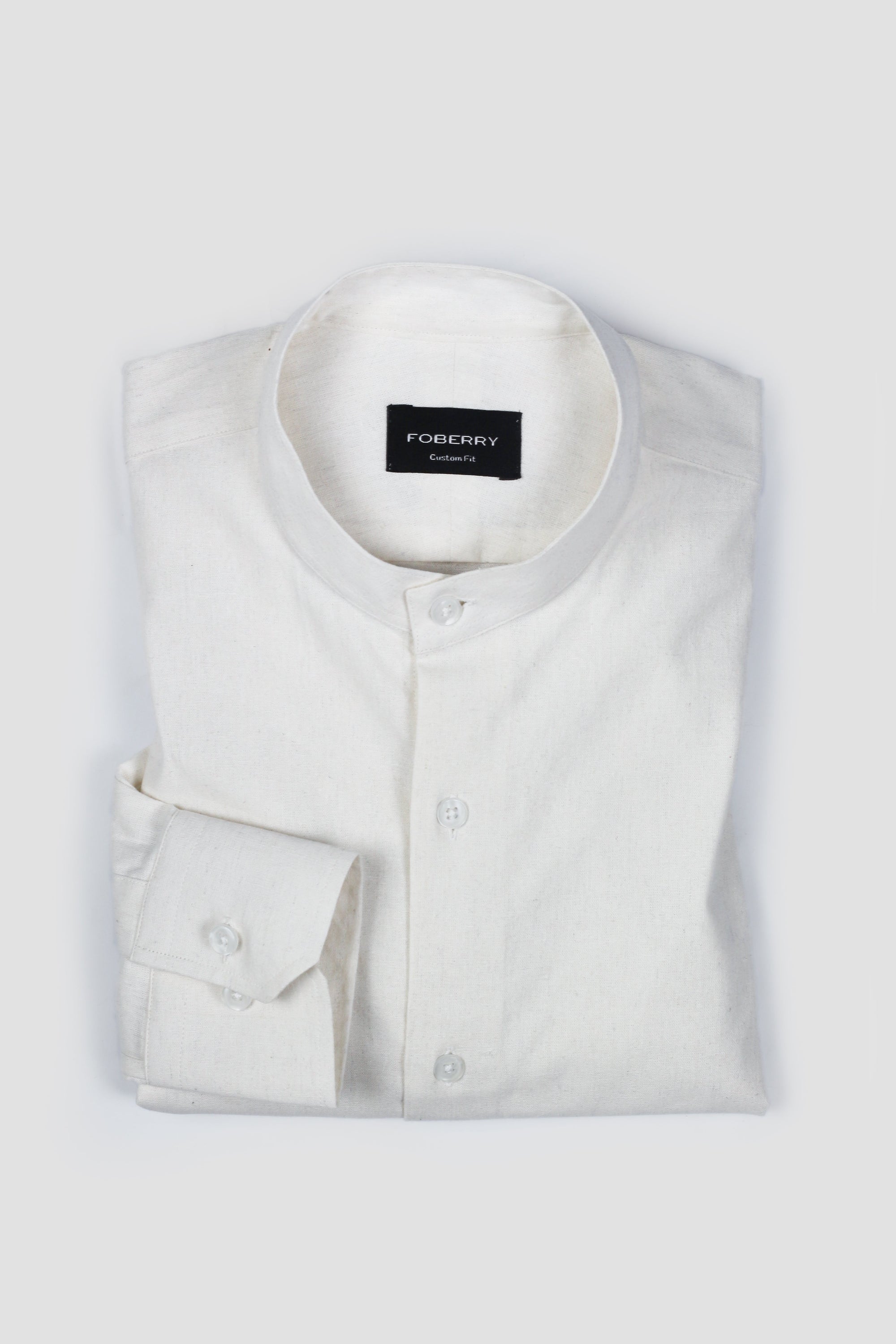White Linen Shirt Band Collar