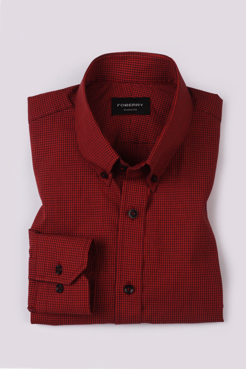 Introducing something that is vibrant and sophisticated at the same time. Pure Egyptian cotton in maroon with a crisscrossed black gingham check makes this shirt a perfect business casual. Pair this shirt with your favorite pair of denim or blue chinos and balance your outfit in a stylish manner.