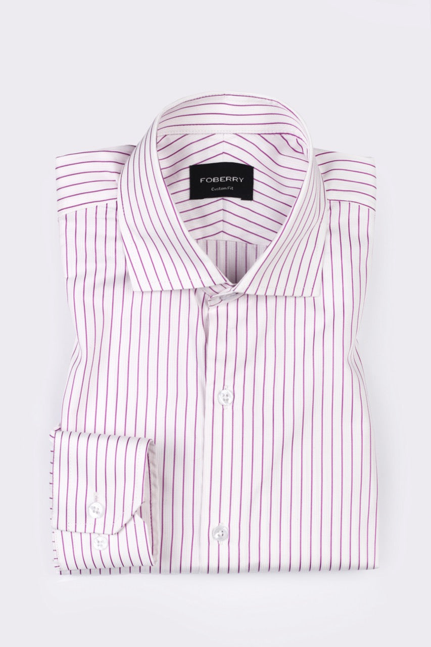 Introducing magnificent magenta stripes on perforated white that will be your wardrobe staple. Premium cotton having perfectly placed pinstripes on white will go well on any formal or semi-formal event. Soft, and hypoallergenic cotton feels premium when wrapped around the skin.