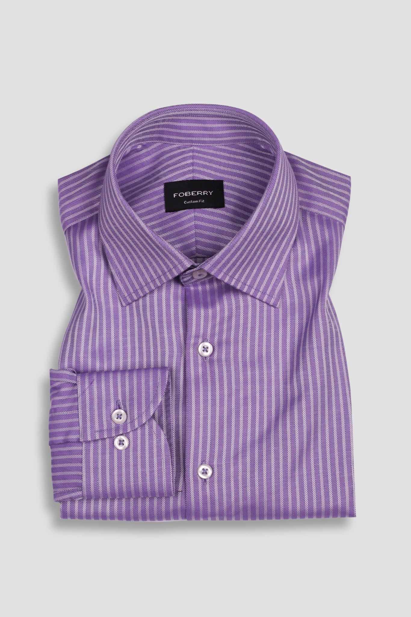 Experience refined tailoring with the Purple Egyptian Twill Striped Shirt. Expertly crafted for a sharp look and comfortable fit.